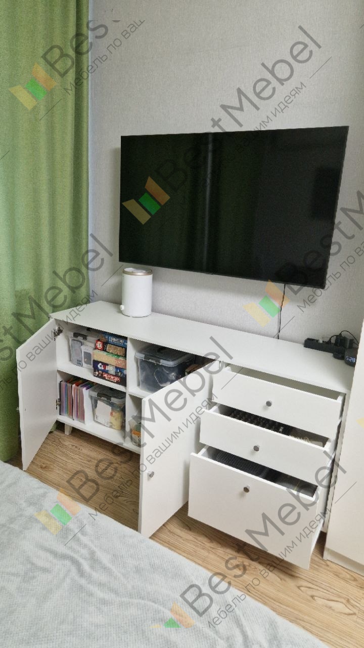 Заказ 00000426060Отличный комод, встал как родной. Подбирала цвет и фурнитуру под остальную мебель в комнате, которую тоже заказывала в этом магазине. Очень довольна - вместительный, влезло все, что нужно, и еще куча места осталось.