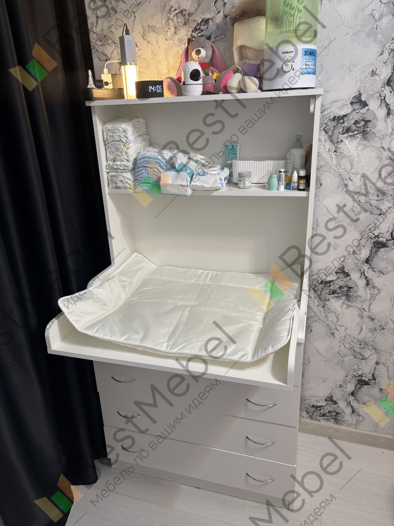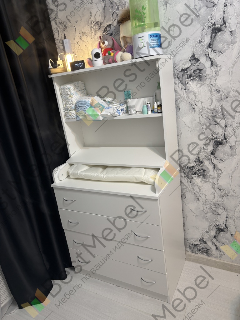 Супер удобный пеленальный комод, качество хорошее, заказала по индивидуальным размерам, пришел очень быстро, полки очень удобны, не знаю без них куда бы распределились нужные с малышом вещи, которые должны быть под рукой.Полки хорошо открываются, туда складываем одежду.