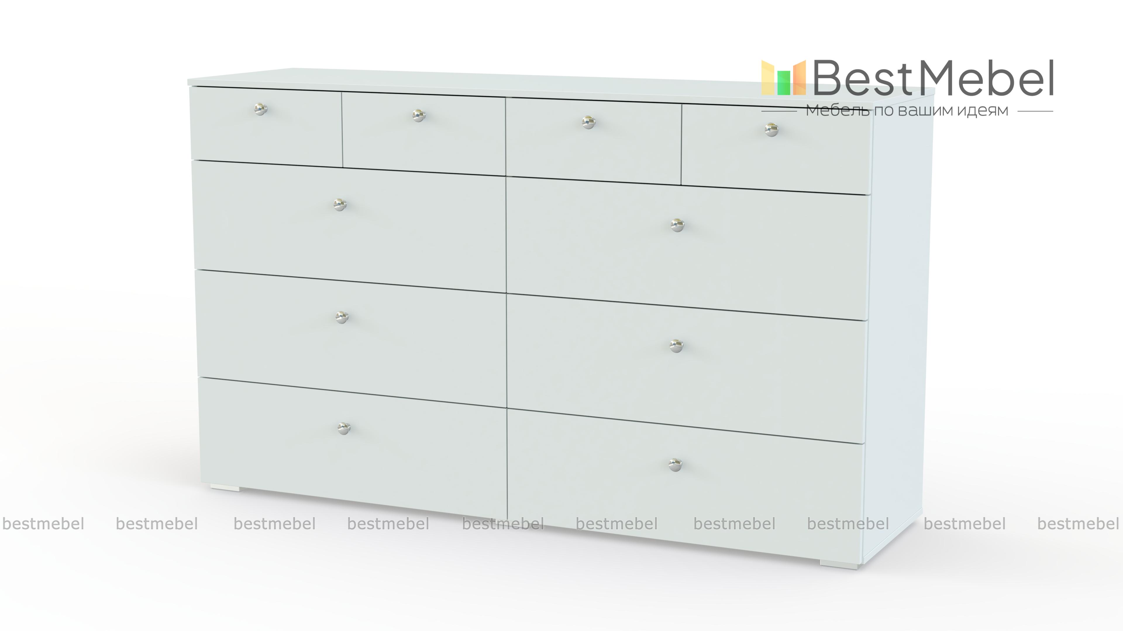 Комод Эдна 10 BMS поможет вам разместить как необходимые под рукой мелочи, так и постельное белье, одежду и аксессуары. Широкая модель с просторной столешницей оборудована четырьмя малыми выдвижными ящиками и шестью большими, оснащенными ручками-кнопками. Простой и функциональный дизайн в сочетании с исполнением в сером цвете делает модель универсальной для современных интерьеров. Купить комод Эдна 10 BMS приглашаем в наш интернет-магазин по доступной цене.