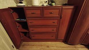 Хороший комод, собирается легко. Ящики выдвигаются плавно, пользуемся 2 месяца, всё устраивает. И по качеству и по дизайну всё ок! Изготовили в срок, как и договаривались, с доставкой тоже не подвели. Вообще фирма нравится, не первый раз заказываем здесь мебель.