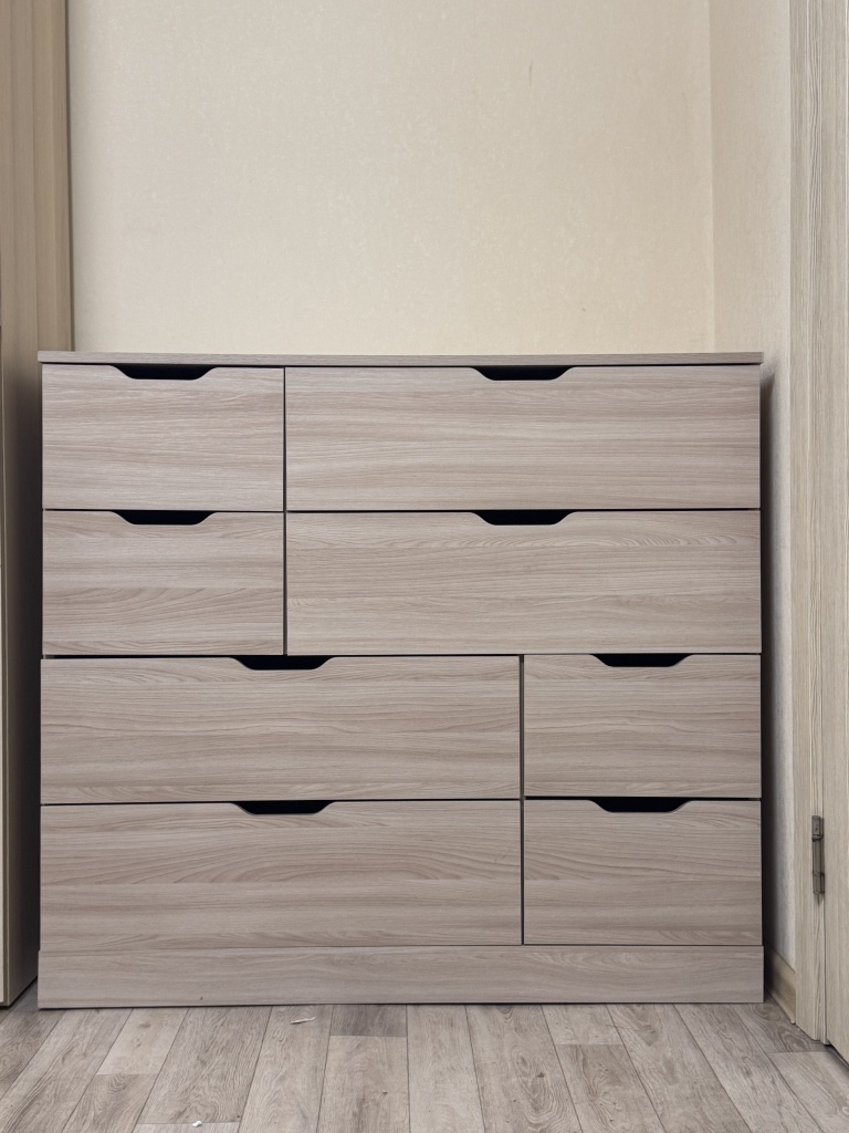 Хочу оставить отзыв о данном комоде. Заказывали через сайт с доставкой дома в феврале 2025 года. Комод искали очень долго, так как нигде именно серого цвета не было, сколько магазинов и сайтов не пересмотрела, еще что очень нравится в данном магазине, что можно подогнать мебель по своим размерам, что мы и сделали с комодом) Комод идеально подошел по цвету к гардеробной, просто один в один. Сам комод очень красивый, вместительный и функциональный. Доставка была осуществлена во время. Все комплектующие к комоду были в наличии. Очень довольна покупкой данного комода. Спасибо большое «Бестмебель»! Вернемся к вам, еще и не раз!