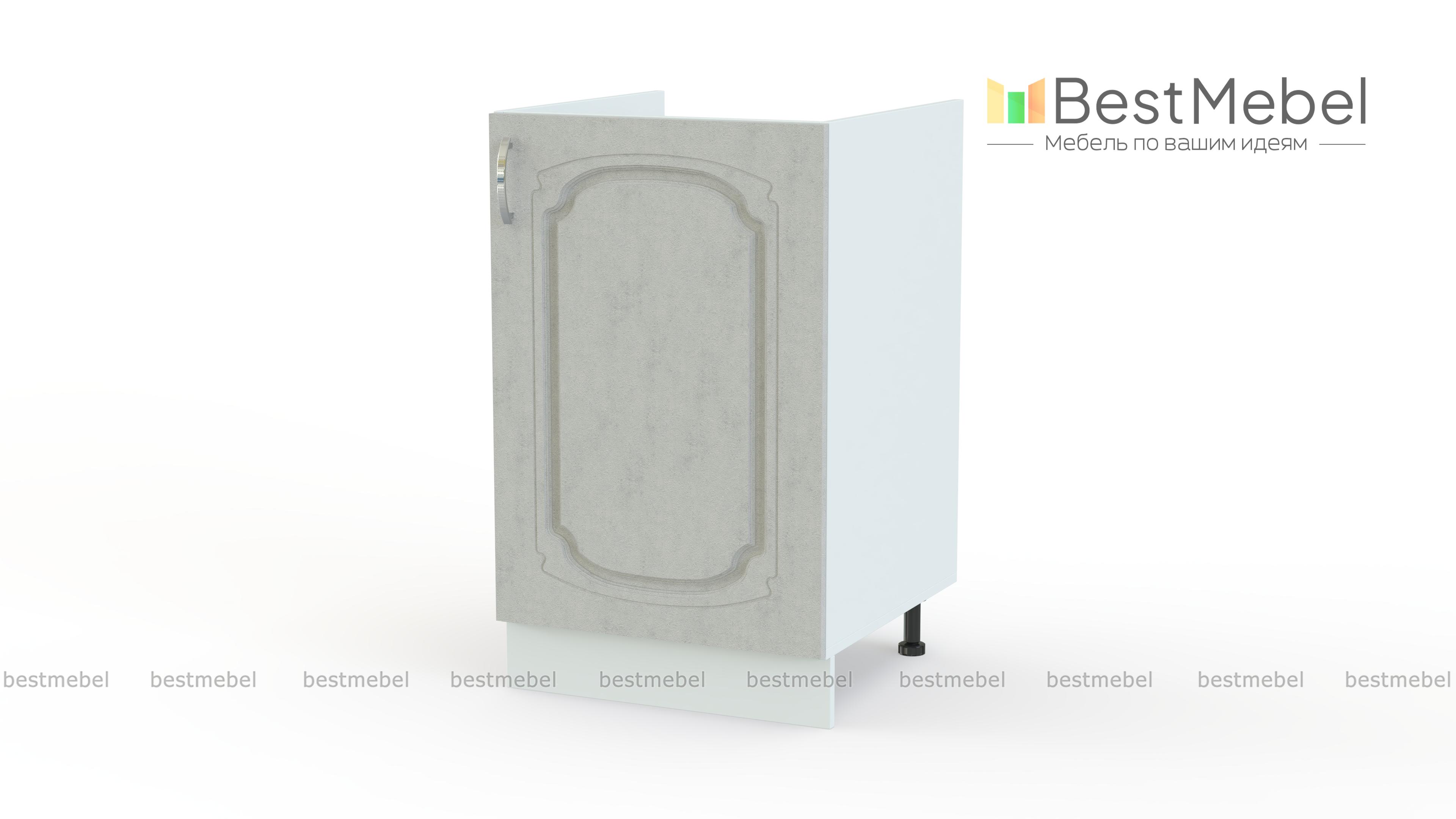 Шкаф нижний под мойку с 1-ой дверцей Настя BMS – необходимый элемент кухонного гарнитура. Классическая модель оборудована распашной дверцей и просторным внутренним отделением, сплошная задняя стенка отсутствует. Удобный в малогабаритных помещениях, небольшой шкаф разместит мойку, мусорный контейнер и скроет коммуникации, сделав интерьер эстетичным. Устойчивость конструкции обеспечивают регулируемые опоры, закрытые цоколем. Купить шкаф нижний под мойку с 1-ой дверцей Настя BMS с изящным фрезерованным рисунком приглашаем в наш интернет-магазин.