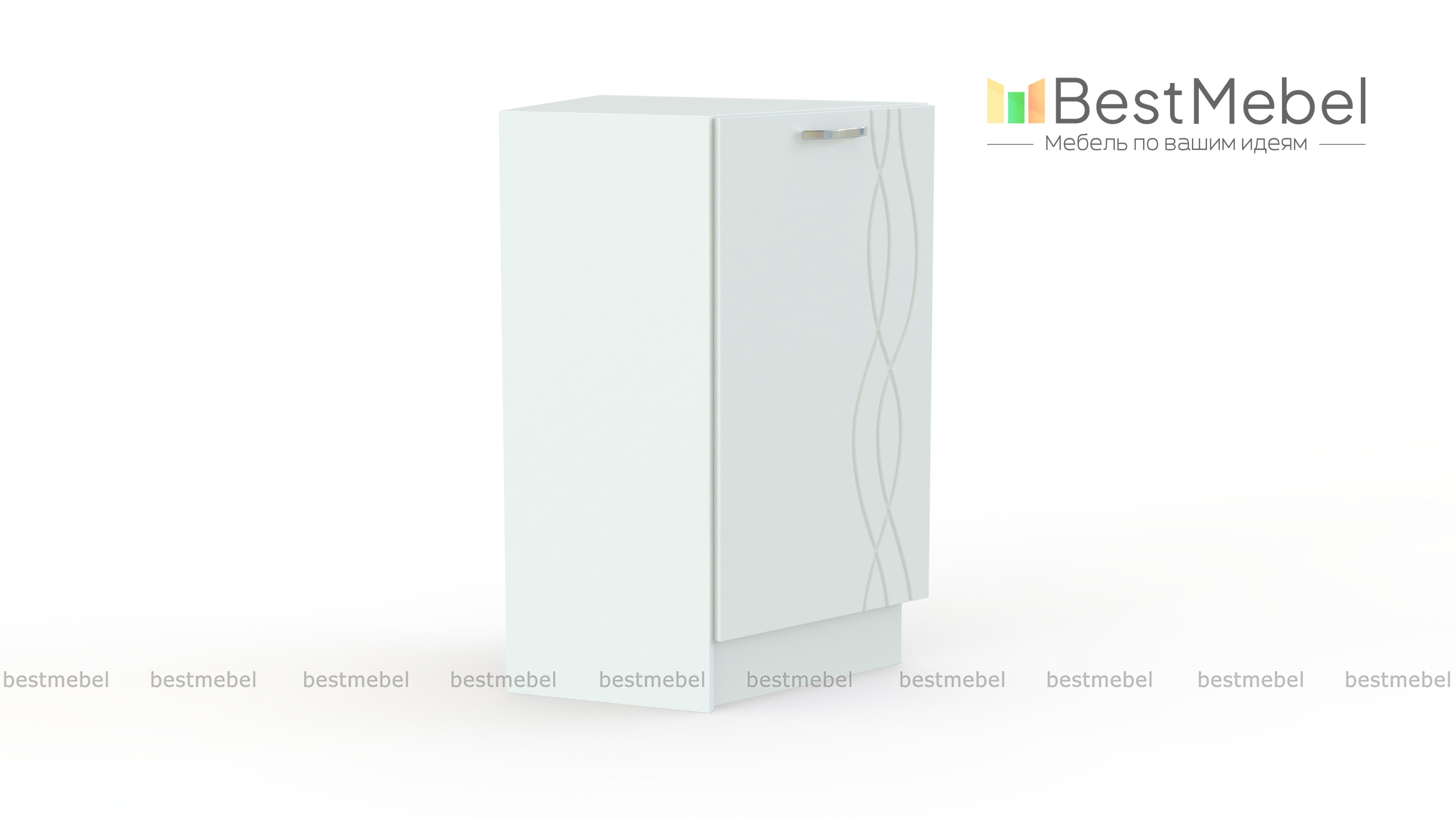 Стол кухонный Софит торцевой BMS – элегантное завершение линии прямых модулей кухонного гарнитура. Компактный шкафчик со скошенным фасадом придаст композиции гармоничный вид и визуальную легкость, а для размещения разнообразных бытовых мелочей предусмотрено распашное отделение с полкой. Матовая поверхность с фрезерованным рисунком проста в уходе и смотрится особенно эффектно. Купить стол кухонный Софит торцевой BMS и дополнить комплект стильной деталью вам поможет наш интернет-магазин.