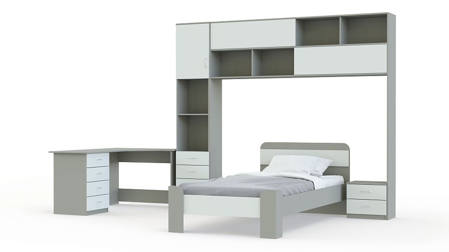 Детская комната Фанни 12 BMS поможет рационально использовать доступное пространство и создать по-настоящему комфортный, яркий интерьер. Модульный комплект включает в себя угловой письменный стол, комбинированный шкаф, навесную книжную полку и кровать с широкими угловыми опорами, дополненную прикроватной тумбой. Корпус в светло-серых тонах гармонично сочетается с белыми фасадами. Купить детскую комнату Фанни 12 BMS с учетом оптимальных параметров приглашаем в наш интернет-магазин.