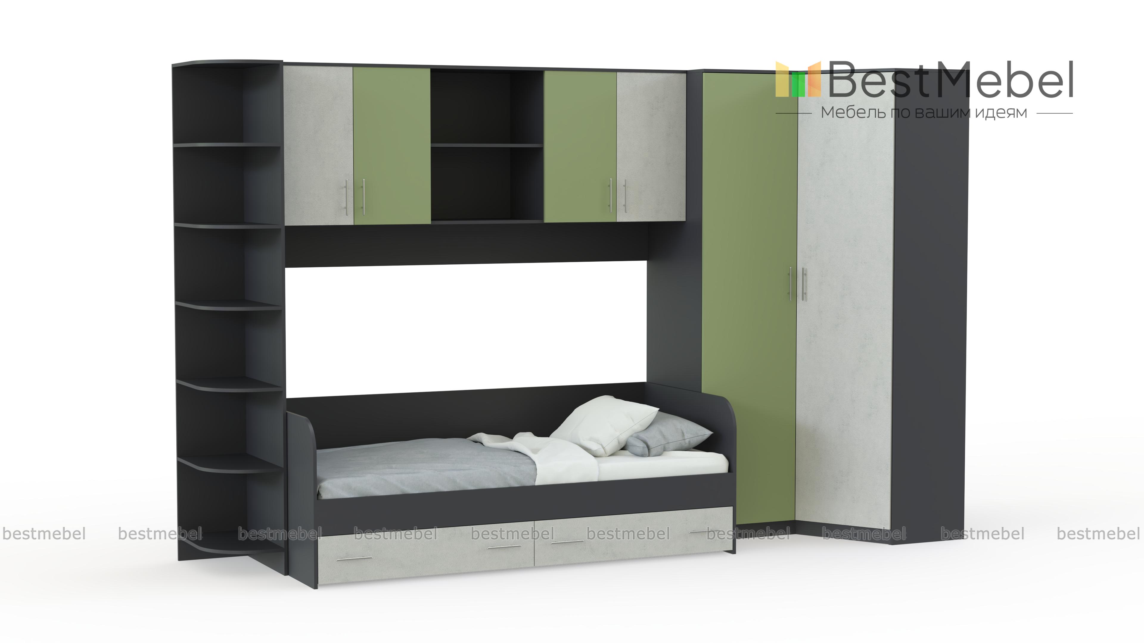 Детская комната Лучик 1 BMS – яркая и многофункциональная современная модель, объединившая комфортное спальное место с вместительной системой хранения. В комплект входит кровать с двумя выдвижными ящиками в основании, вместительный угловой шкаф, угловой модуль с открытыми полками и вместительная антресоль помогут разместить книги и необходимые мелочи. Цветные фасады добавят в детскую комнату красок и создадут позитивную атмосферу. Купить детскую комнату Лучик 1 BMS недорого приглашаем в наш интернет-магазин.