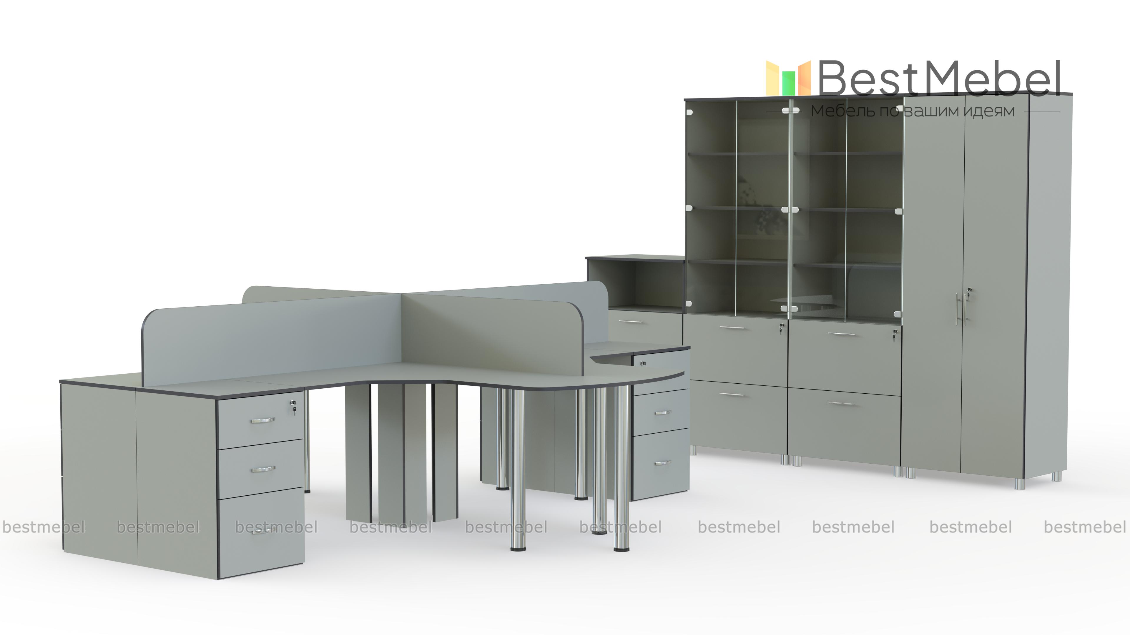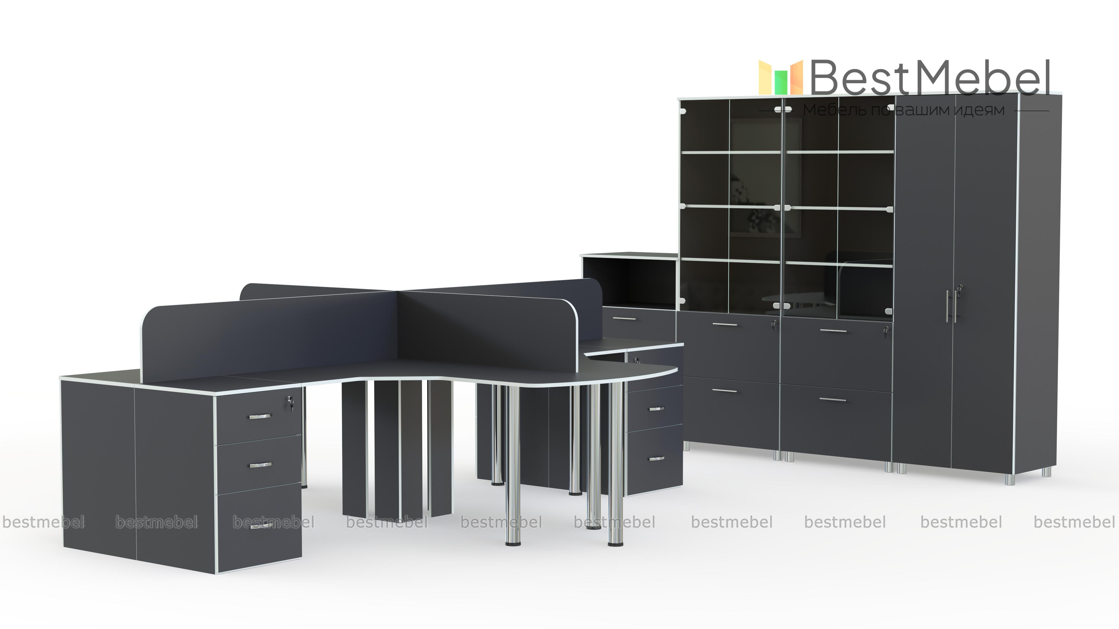 Офисный комплект Корсар Премиум 2 BMS отличается удобной модульной конструкцией, которая не только экономически выгодна, но и позволит создать максимально комфортный для работы интерьер. В комплект входят угловые письменные столы с приставными тумбами и скругленными торцевыми элементами, двухдверный платяной шкаф и три комбинированных для документов. Износостойкие поверхности обеспечат модели долговечность и эстетичный внешний вид. Купить офисный комплект Корсар Премиум 2 BMS вы сможете в нашем интернет-магазине, подобрав оптимальные параметры.
