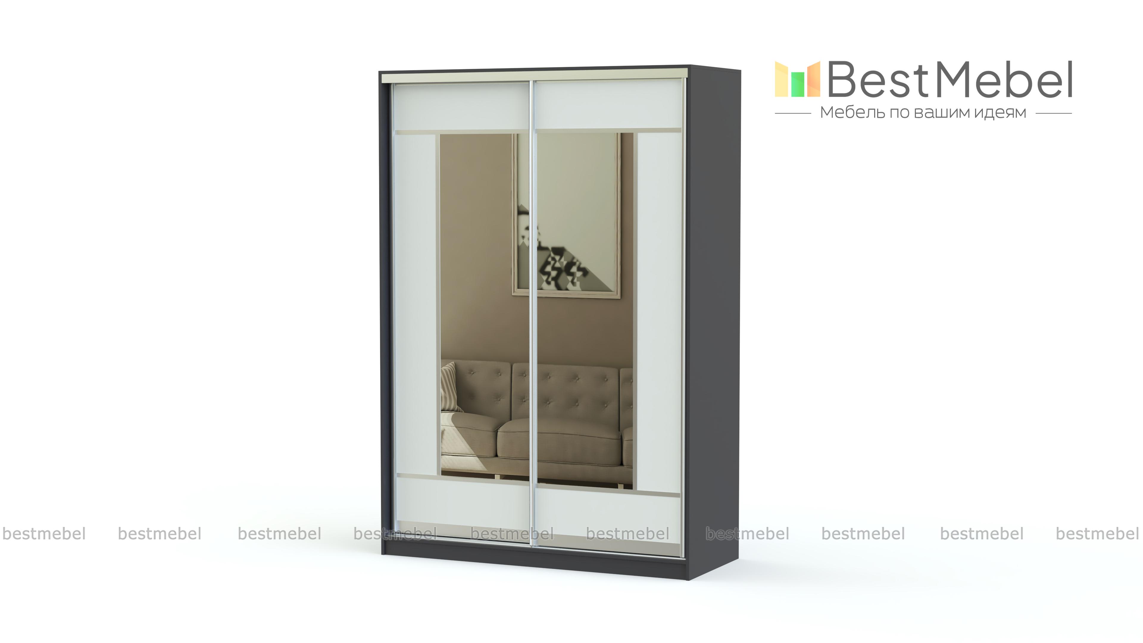 Вместительный шкаф-купе Леона BMS с двумя раздвижными дверями отлично подойдет для хранения вещей и оформления интерьера помещения. Благодаря использованию прочного алюминиевого профиля в комбинации с зеркалами и терракотовыми вставками создается эффект легкости и простоты. Центральная часть фасада оформлена зеркалами, вокруг которых имеется яркое обрамление. Внутреннее наполнение может быть скорректировано по желанию и дополнено выдвижными ящиками или полками.