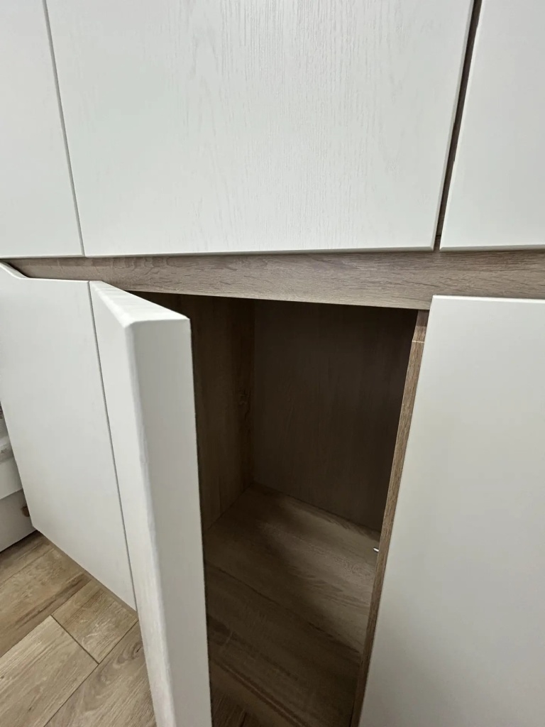 Заказывали шкаф в детскую — очень довольны! высота 260, ширина 138 см. Большой плюс, что можно сделать точно по своим размерам, нам нужно было в ровень со стеной, встал идеально. Учли все наши пожелания - и выпил под плинтус, и внутреннее наполнение. Материалы качественные, кромка на фасадах идеальная! Рекомендую!