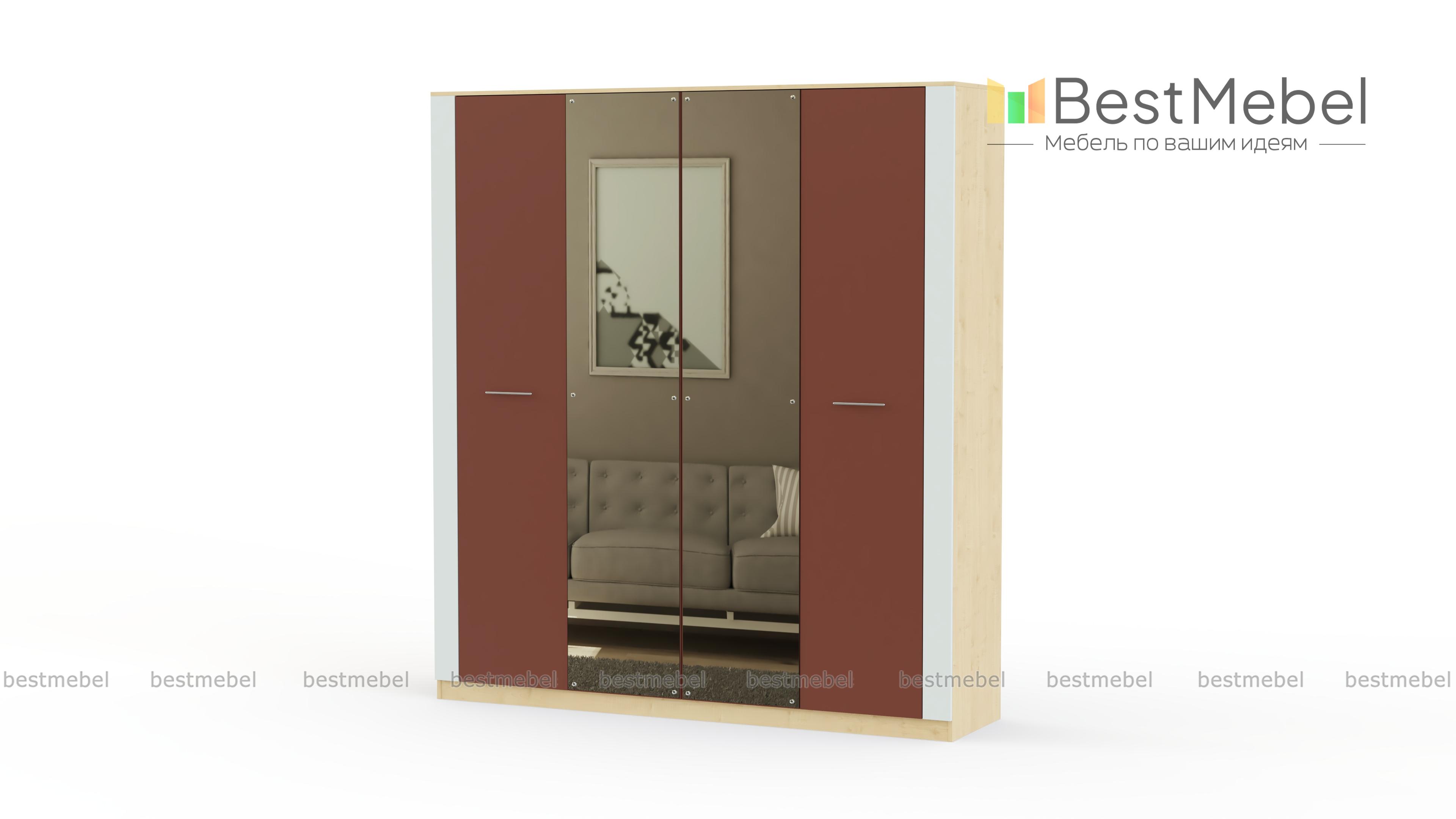 Распашной шкаф Венета BMS выполнен в светлых древесных тонах из ламинированной плиты высокого качества, а контрастный вертикальный декор зрительно вытягивает помещение в высоту. Четырехдверная модель с просторными внутренними отделениями порадует владельцев вместительностью и легко решит проблему хранения большого количества вещей. Зеркальные центральные створки удобны для примерки и придают комнате дополнительную глубину. Купить распашной шкаф Венета BMS вы сможете недорого в нашем интернет-магазине.