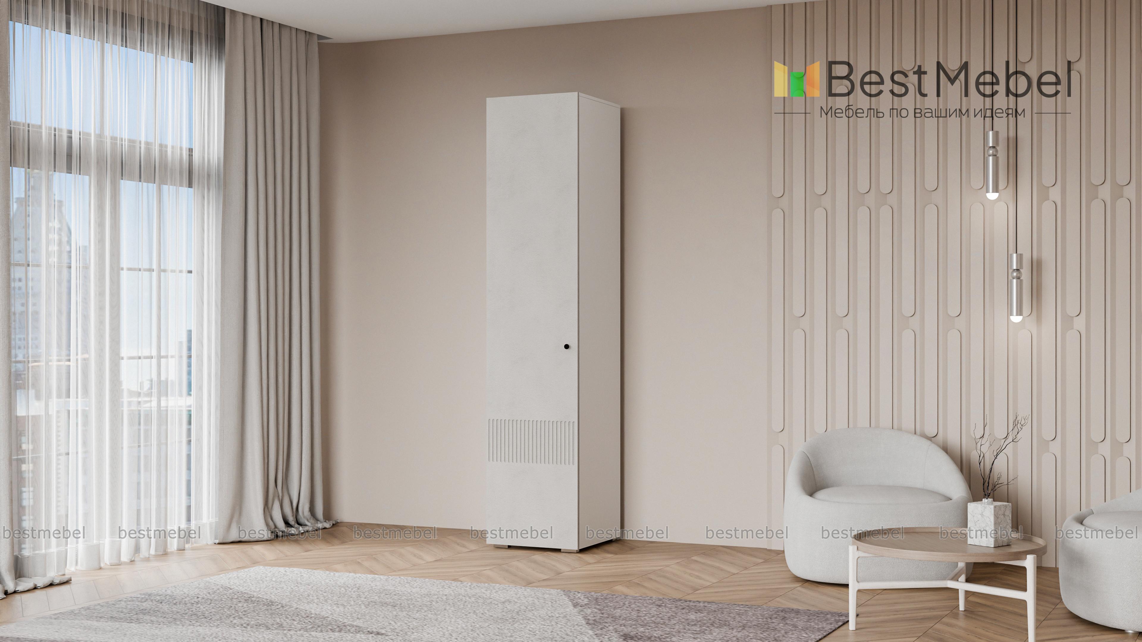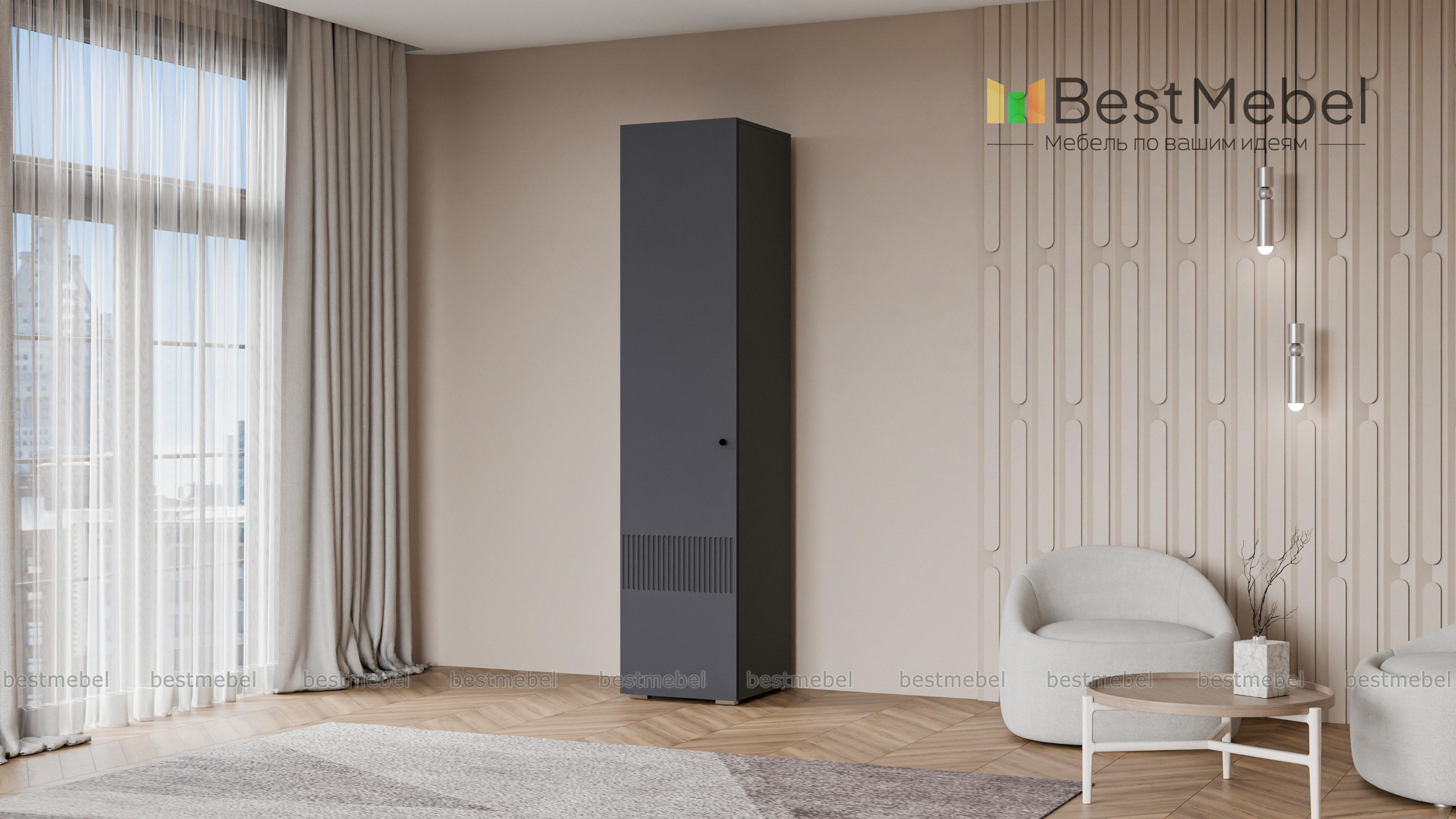 Шкаф распашной Джосс 1 BMS представляет собой компактный пенал для одежды. Внутри единственного отделения находятся штанга для вещей на вешалках и верхняя полка под аксессуары или коробки с мелочами. Фасад шкафа с фрезеровкой по низу выглядит ярко и современно, создавая стильный интерьер в вашей прихожей, спальне или гостиной. Купить шкаф распашной Джосс 1 BMS в подходящем размере и любых оттенках из каталога приглашаем недорого в наш интернет-магазин.