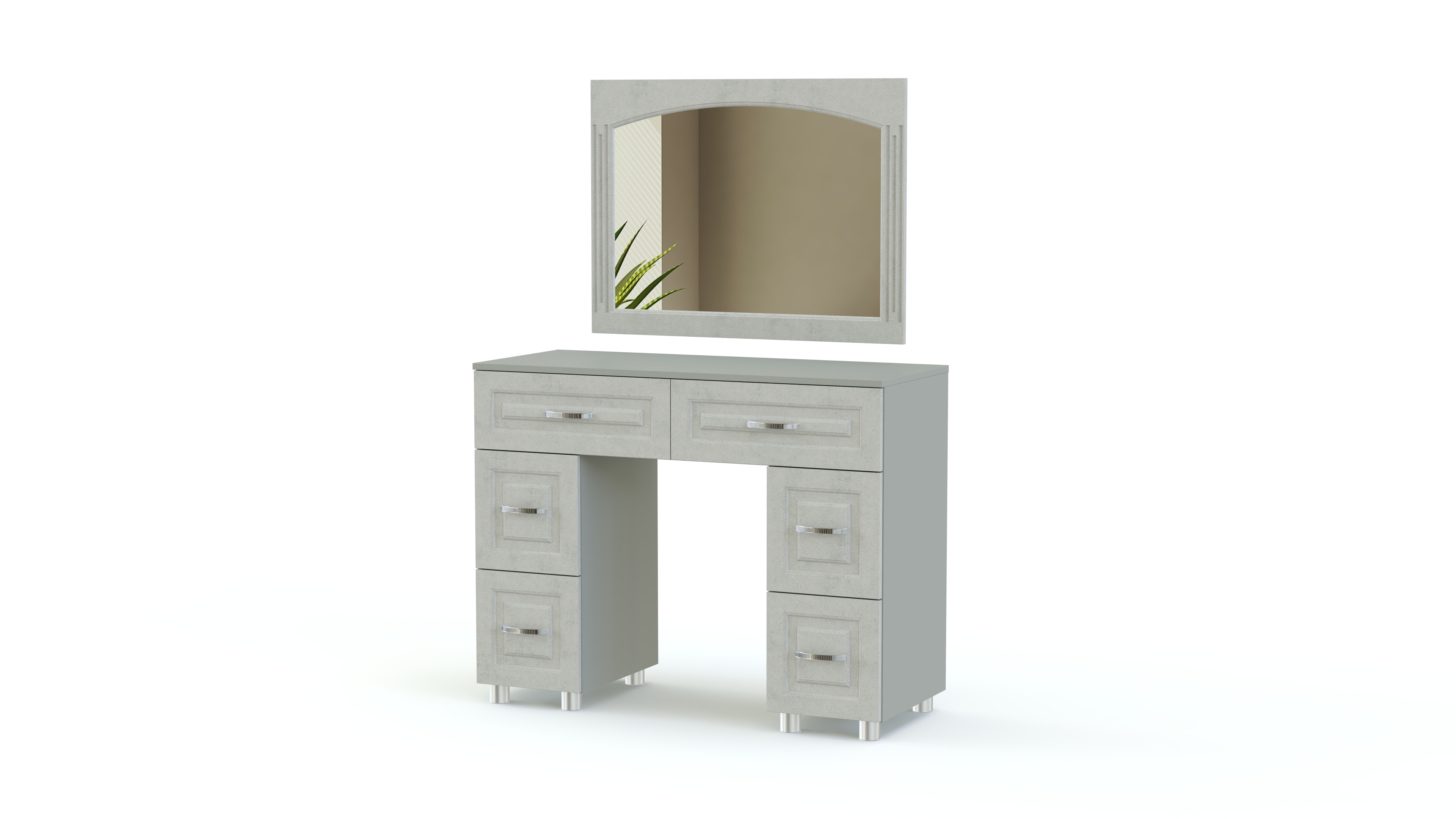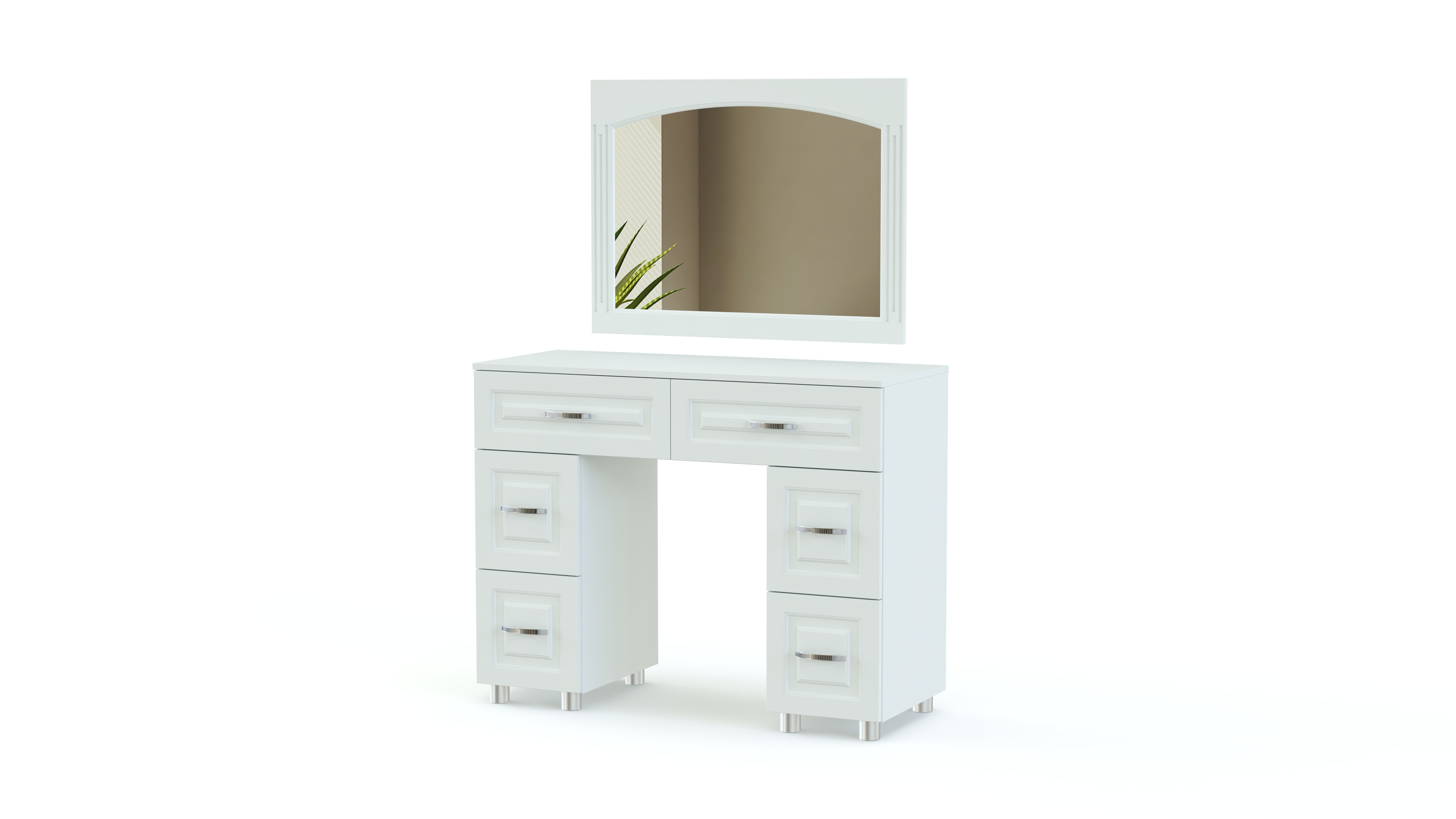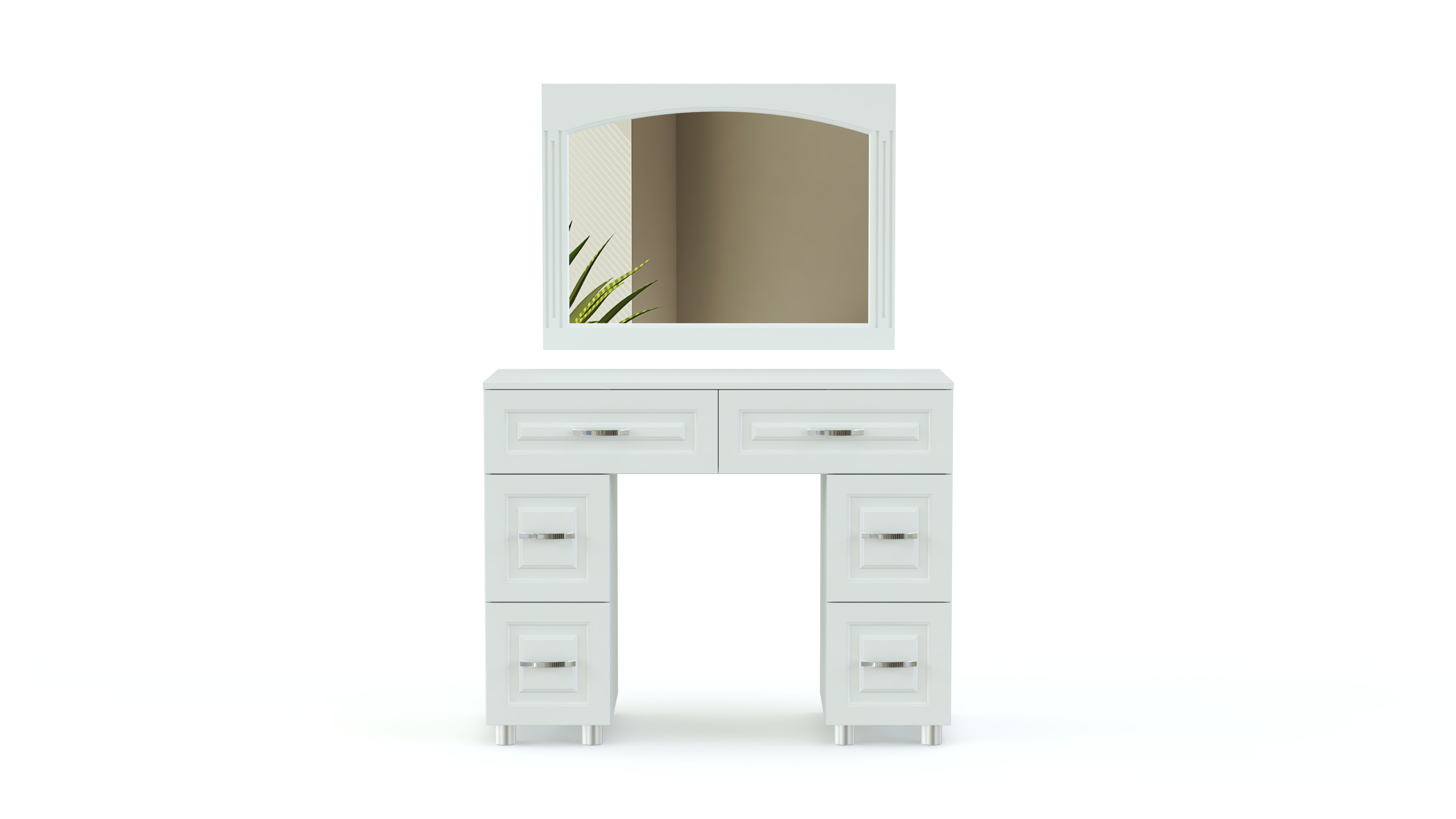 Элегантный классический комплект для спальни Элизабет Композиция 3 BMS, выполненный в светлых тонах, выглядит особенно легко и атмосферно и станет в интерьере вашего дома стильным акцентом. В гарнитур входят платяной шкаф с изящными полукруглыми зеркалами, туалетный столик с навесным широким зеркалом, удобная двуспальная кровать и две прикроватные тумбы. Фасады мебели декорированы металлическими, под позолоту, оригинальными ручками, придающими всему комплекту винтажный оттенок.