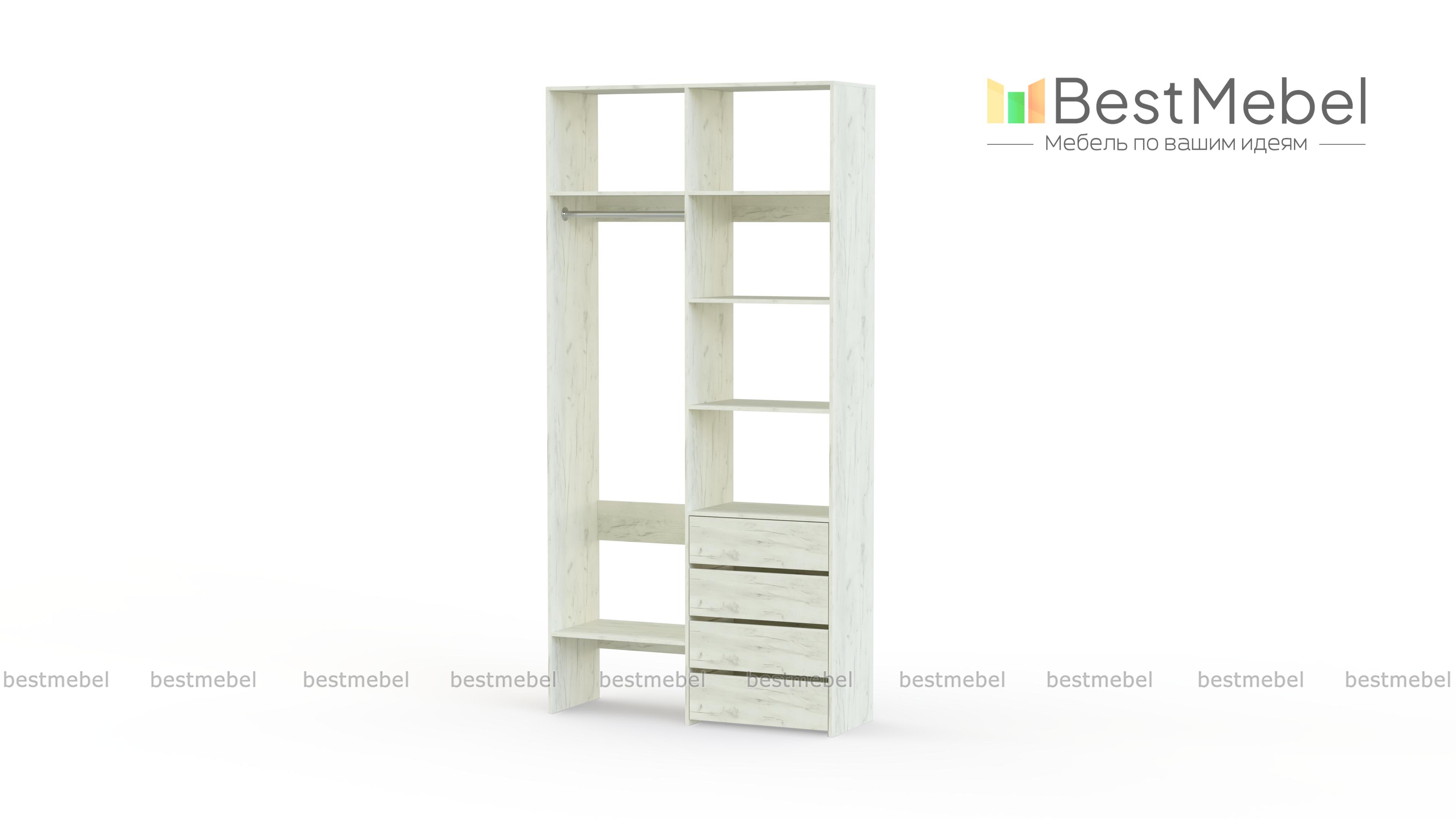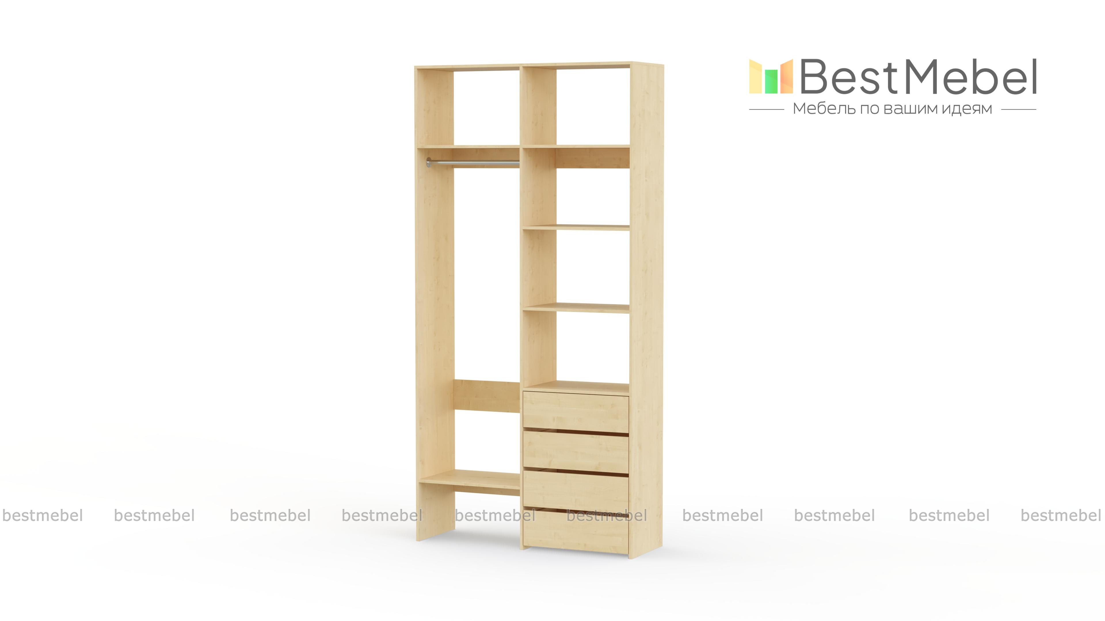 Стеллаж для одежды Мирта 2 BMS поможет вам организовать хранение дома или в торговом зале. Открытая конструкция со штангой, полками и рядом из четырех выдвижных ящиков подходит для размещения одежды на вешалках, коробок с обувью и мелкого трикотажа. Материал изготовления – устойчивая к износу и долговечная ламинированная плита в базовом оттенке. Купить стеллаж для одежды Мирта 2 BMS приглашаем в наш интернет-магазин, подобрав необходимые размеры и цвет по каталогу.