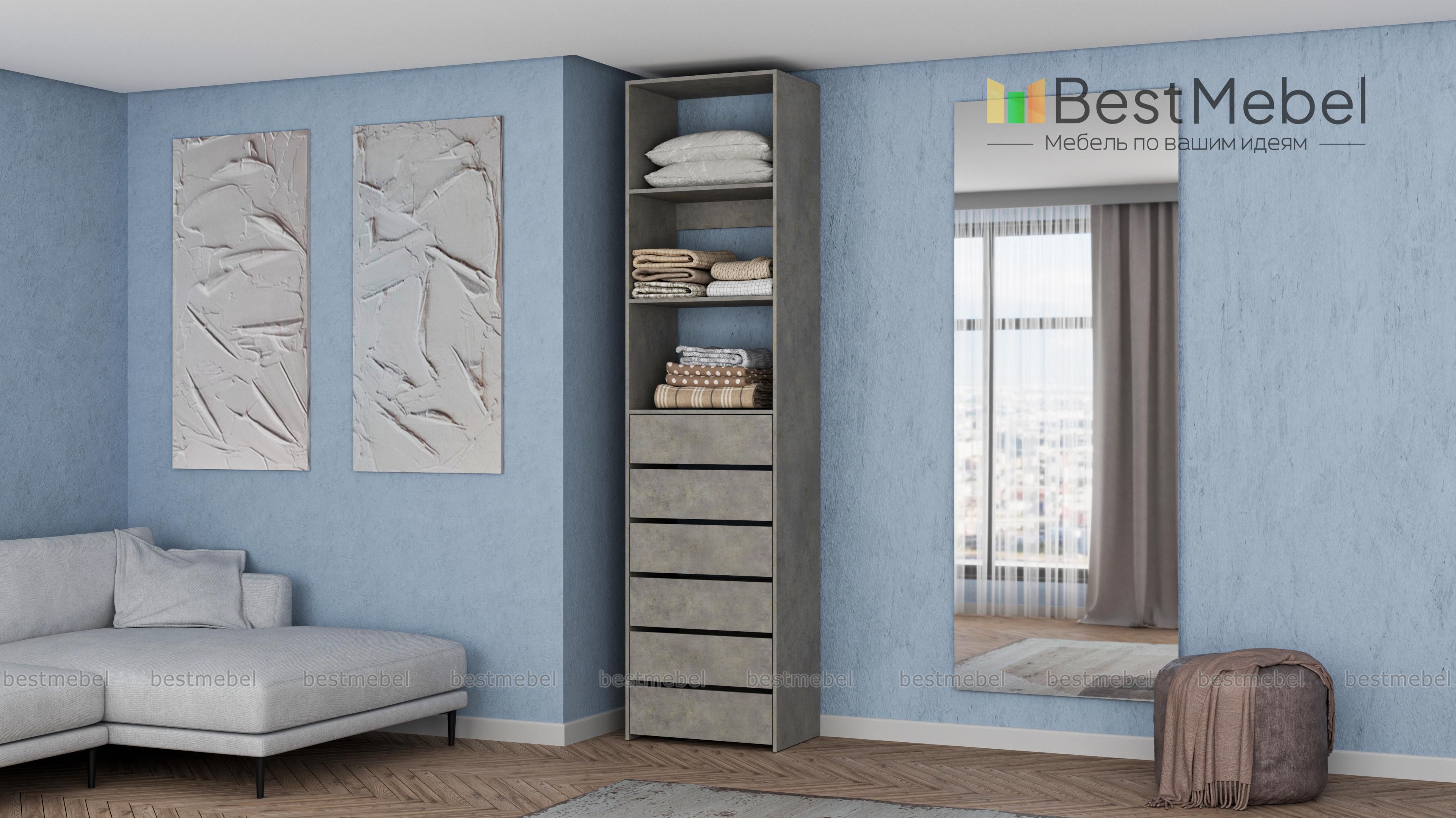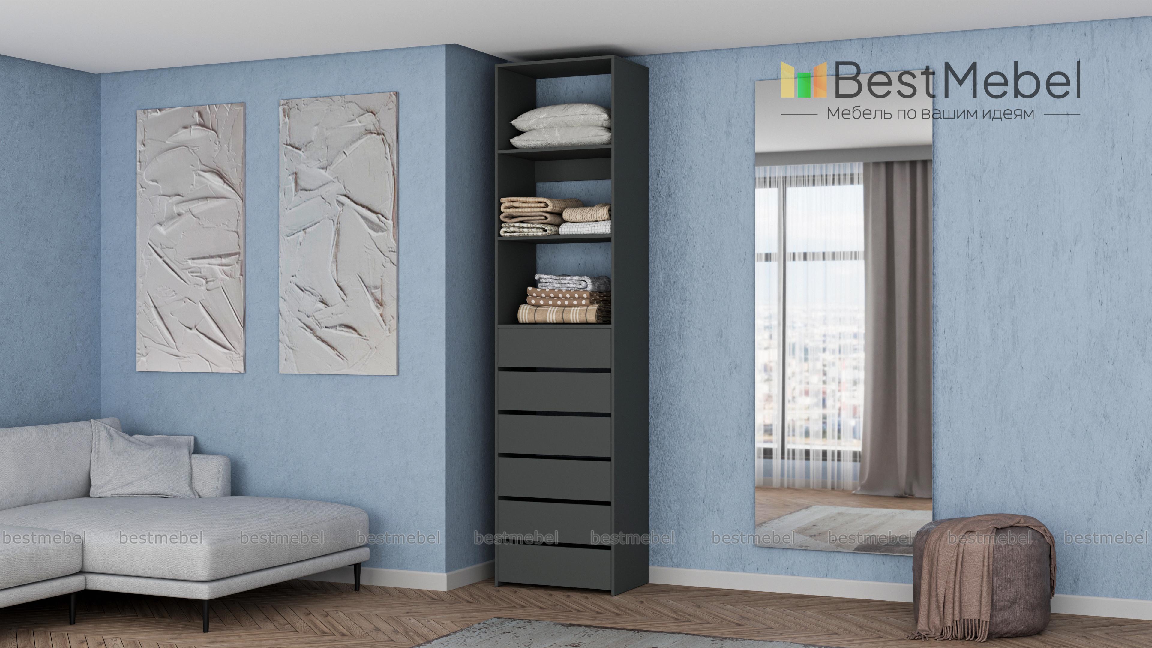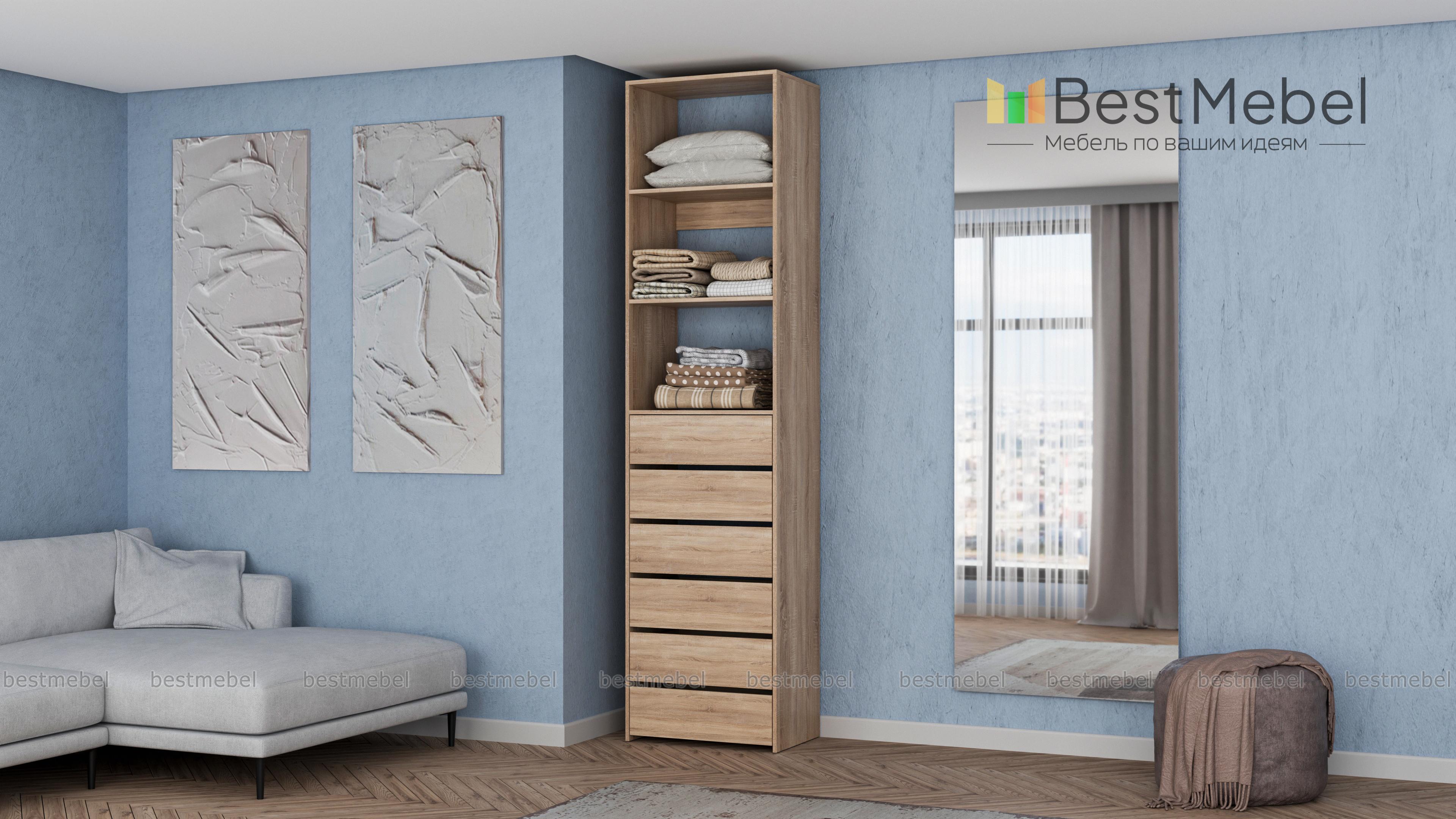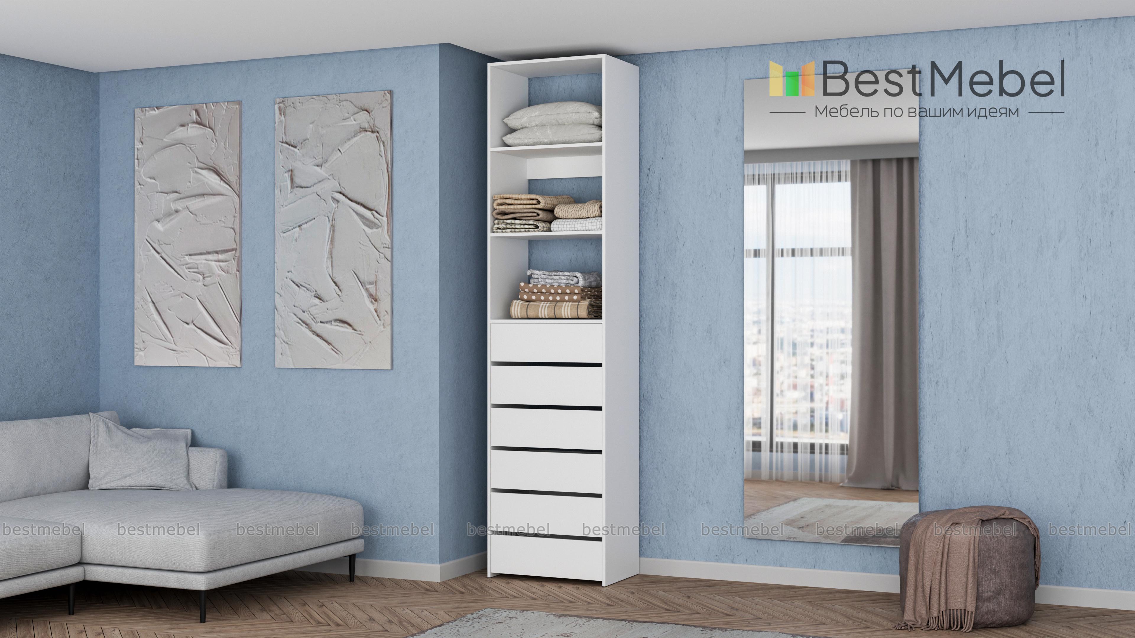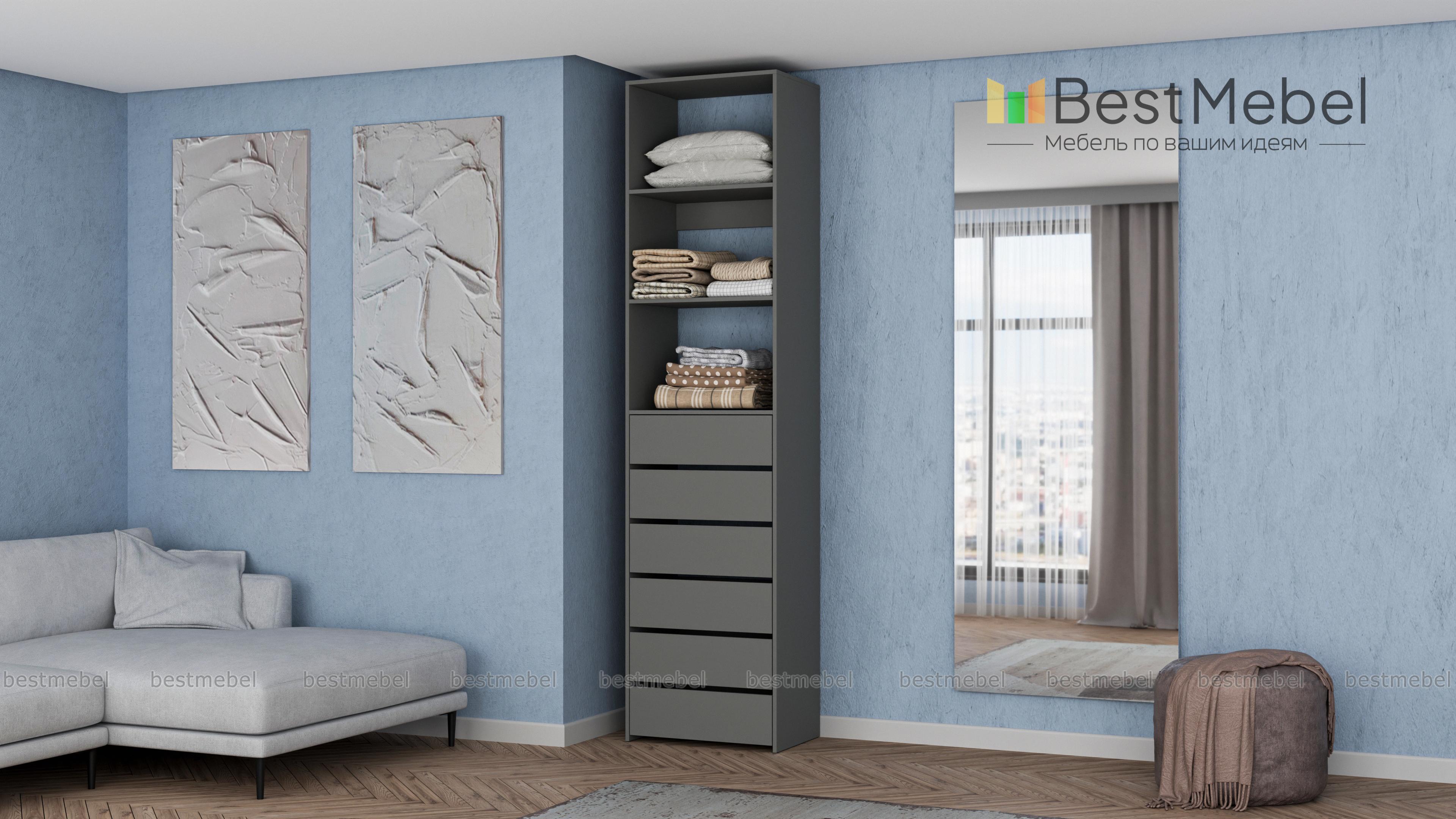 Стеллаж для одежды Мирта 37 BMS поможет оборудовать место для хранения стопок с одеждой, органайзеров с мелочами и сезонных аксессуаров. Разделенный двумя полками в верхней части, стеллаж дополнен шестью выдвижными отделениями. Поверхности из ламинированной ДСП устойчивы к появлению царапин и влаге, надолго сохраняя эстетичный внешний вид. Купить стеллаж для одежды Мирта 37 BMS приглашаем в наш интернет-магазин с индивидуальным подбором цвета и размеров.
