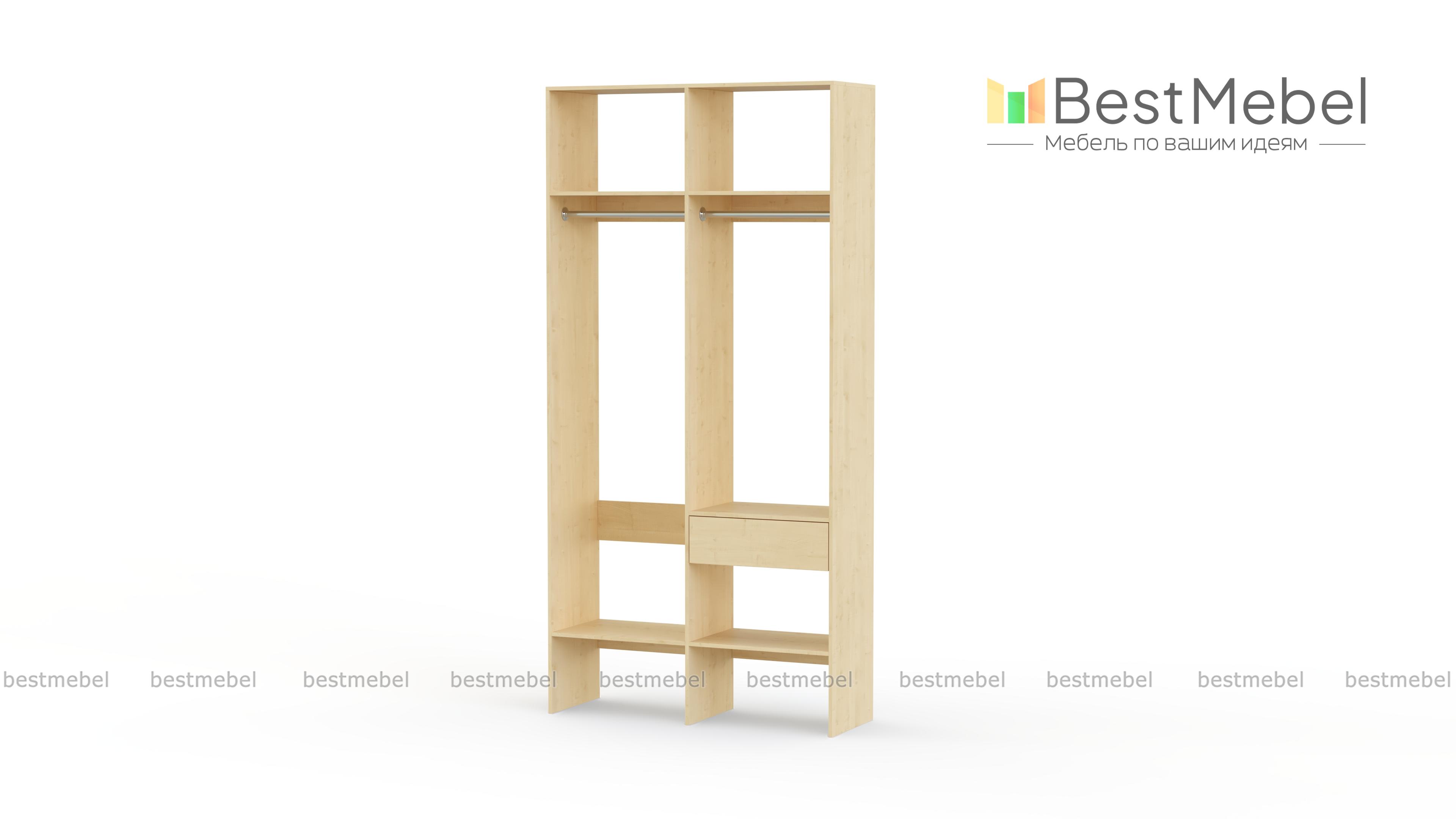 Стеллаж для одежды Мирта 42 BMS для гардеробной или прихожей выполнен в нейтральном светлом оттенке из ламинированной ДСП. Компактная и легкая двухсекционная конструкция объединила два платяных отделения разной высоты, верхние и нижние полки, а также выдвижной ящик, предназначенный для мелочей. В открытом стеллаже будут всегда на виду ваша повседневная одежда и обувь. Купить стеллаж для одежды Мирта 42 BMS вы сможете в нашем интернет-магазине, самостоятельно подобрав размеры и цвет.