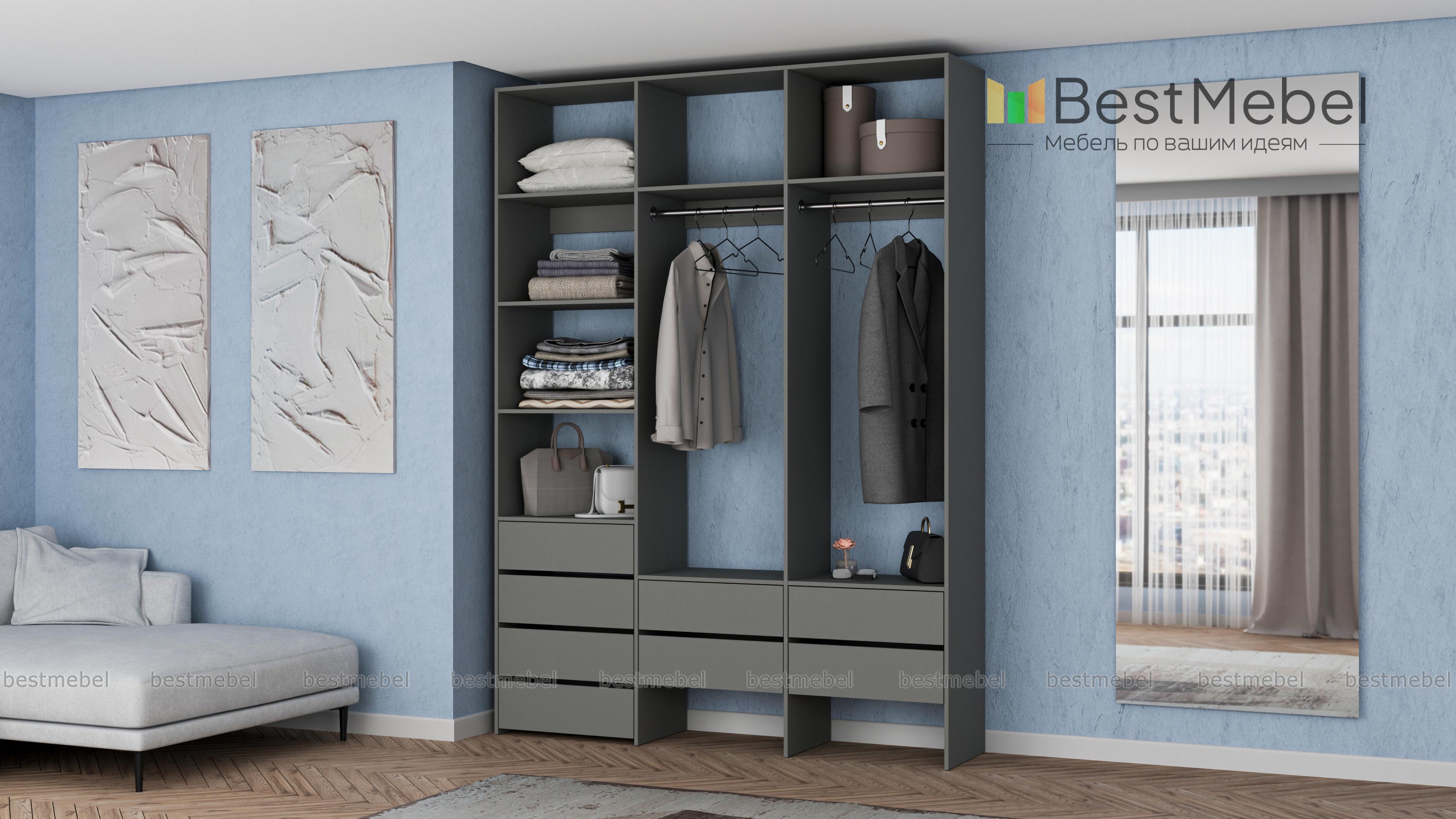 Стеллаж для одежды Мирта 54 BMS станет частью современной прихожей или гардеробной. Конструкция из ламинированной плиты имеет универсальный дизайн, надежна и функциональна. Система хранения трехсекционного стеллажа включает в себя две платяные штанги, ящики для белья и мелочей, ряд верхних и боковых полок, а пространство под ящиками можно использовать для размещения обуви. Купить стеллаж для одежды Мирта 54 BMS приглашаем в наш интернет-магазин, подобрав нужные размеры и цвет по каталогу.