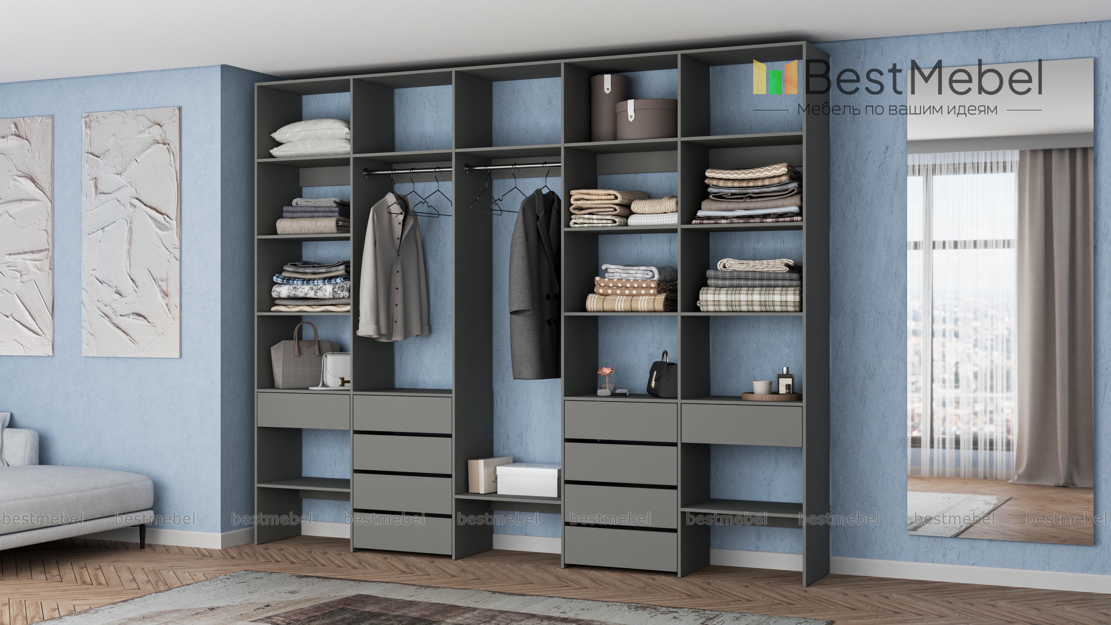 Стеллаж для одежды Мирта 71 BMS вместителен и подходит для просторных помещений. Использование ламинированной плиты делает модель недорогой, но при этом надежной и не требующей сложного ухода. Продуманная конфигурация стеллажа предусматривает платяные секции под одежду разной длины, большое количество полок и выдвижные ящики, заменяющие отдельно стоящие комоды. Купить стеллаж для одежды Мирта 71 BMS в нужном размере и гармонирующем с интерьером оттенке вы сможете в нашем интернет-магазине.