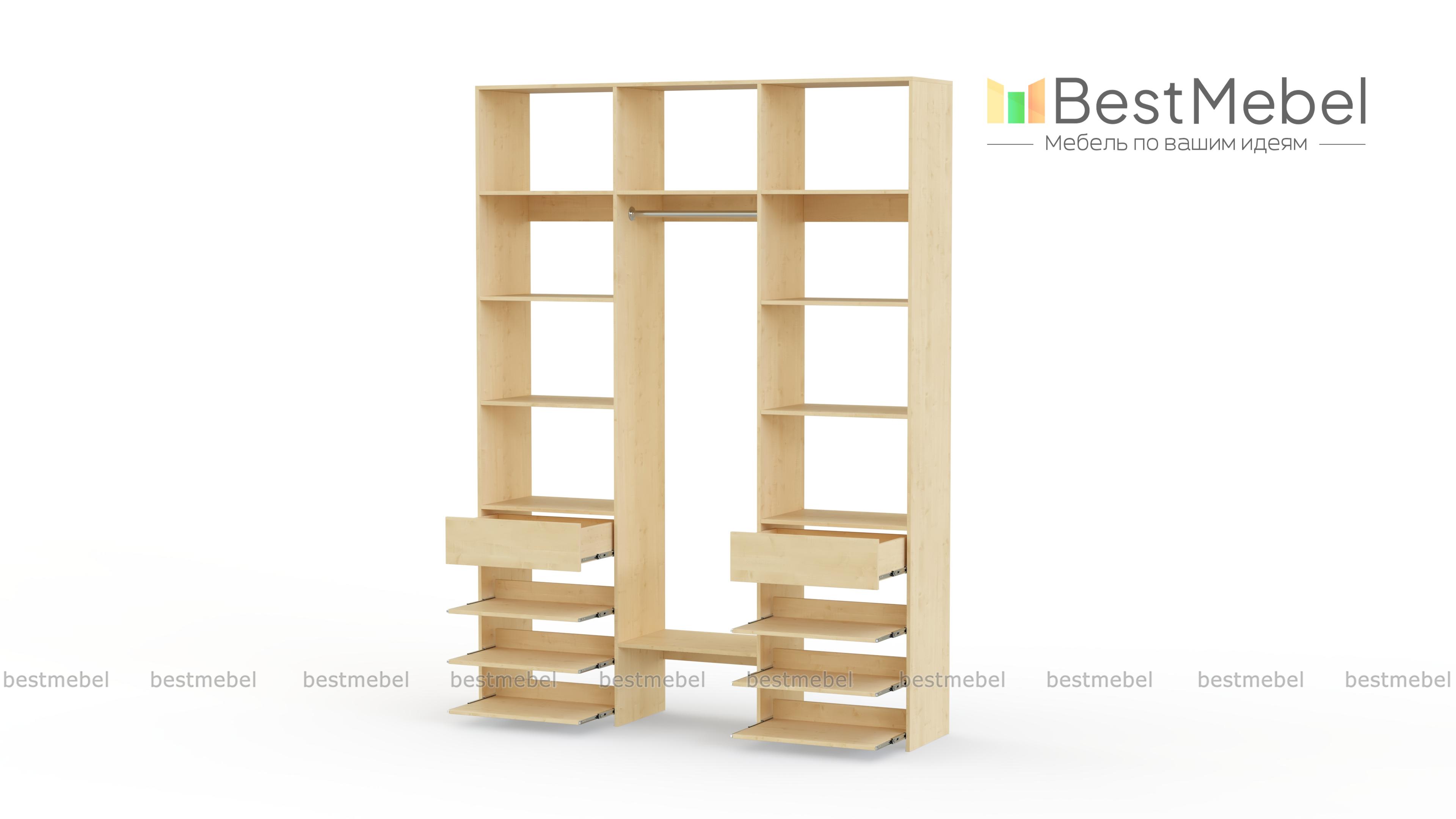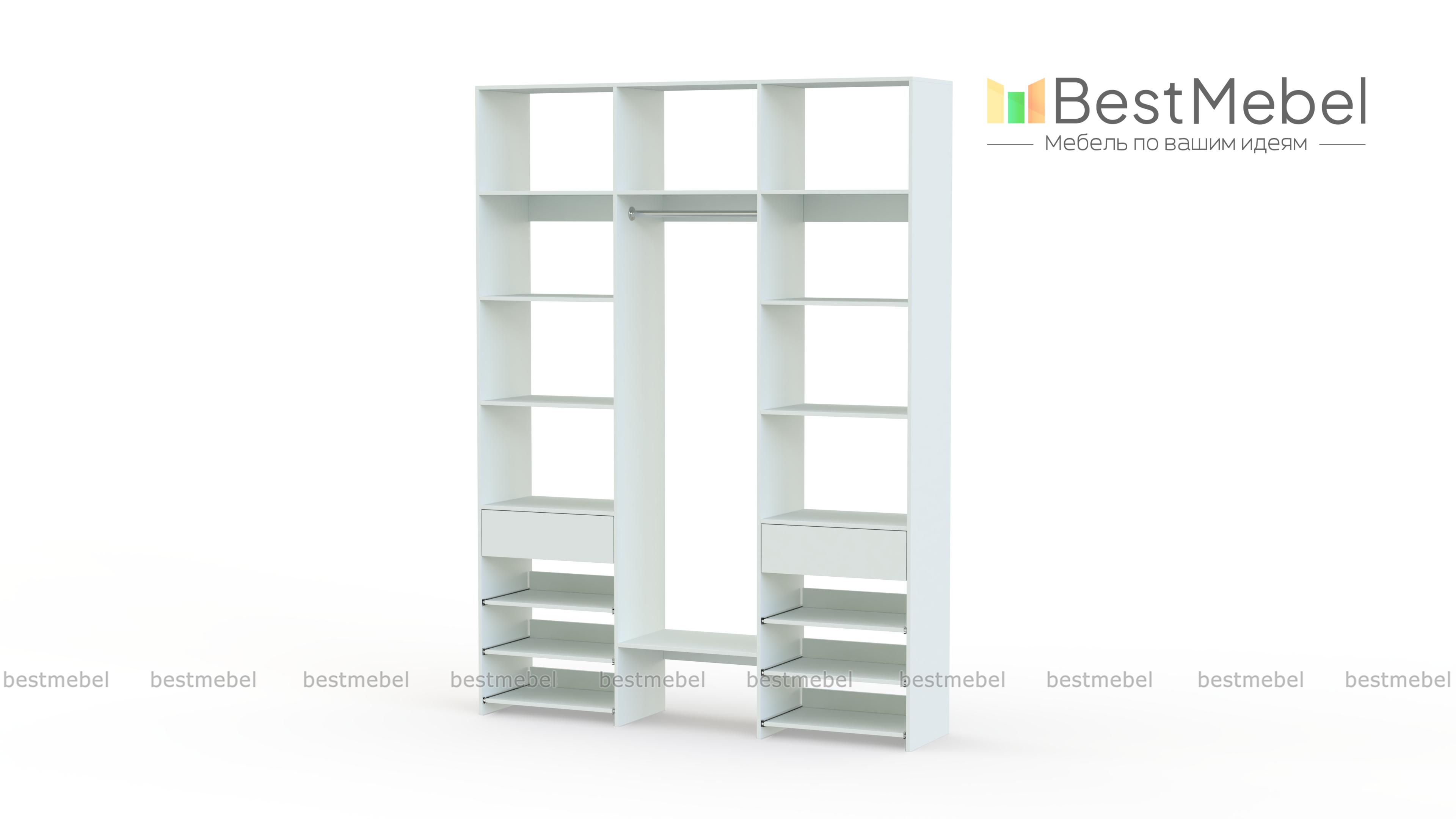 Стеллаж для одежды Мирта 93 BMS поможет вам разместить повседневные и редко используемые вещи. Удобная конфигурация включает в себя расположенные на разной высоте полки и секцию для вешалок, два ящика под мелкие предметы и выдвижные панели справа и слева. Благодаря изготовлению из ламинированной плиты стеллаж надежный, доступный по цене и обладает широким выбором актуальных оттенков. Купить стеллаж для одежды Мирта 93 BMS в оптимальном размере приглашаем к нам в интернет-магазин.