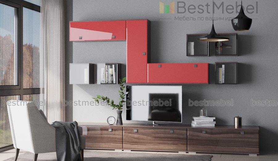 Глянцевая гостиная 7 BMS отличается модульной конструкцией, которая позволит создать индивидуальный вариант, учитывающий все особенности помещения. Строгие и лаконичные, модули системы выполнены в контрастном сочетании древесных тонов и цветного оттенка с хромированной фурнитурой. Низкие тумбы, навесные шкафчики с глухими фасадами и открытые полки позволят нестандартно оформить зону ТВ, разместить книги, интерьерные украшения и бытовые мелочи. Купить Глянцевую гостиную 7 BMS приглашаем недорого в наш интернет-магазин.