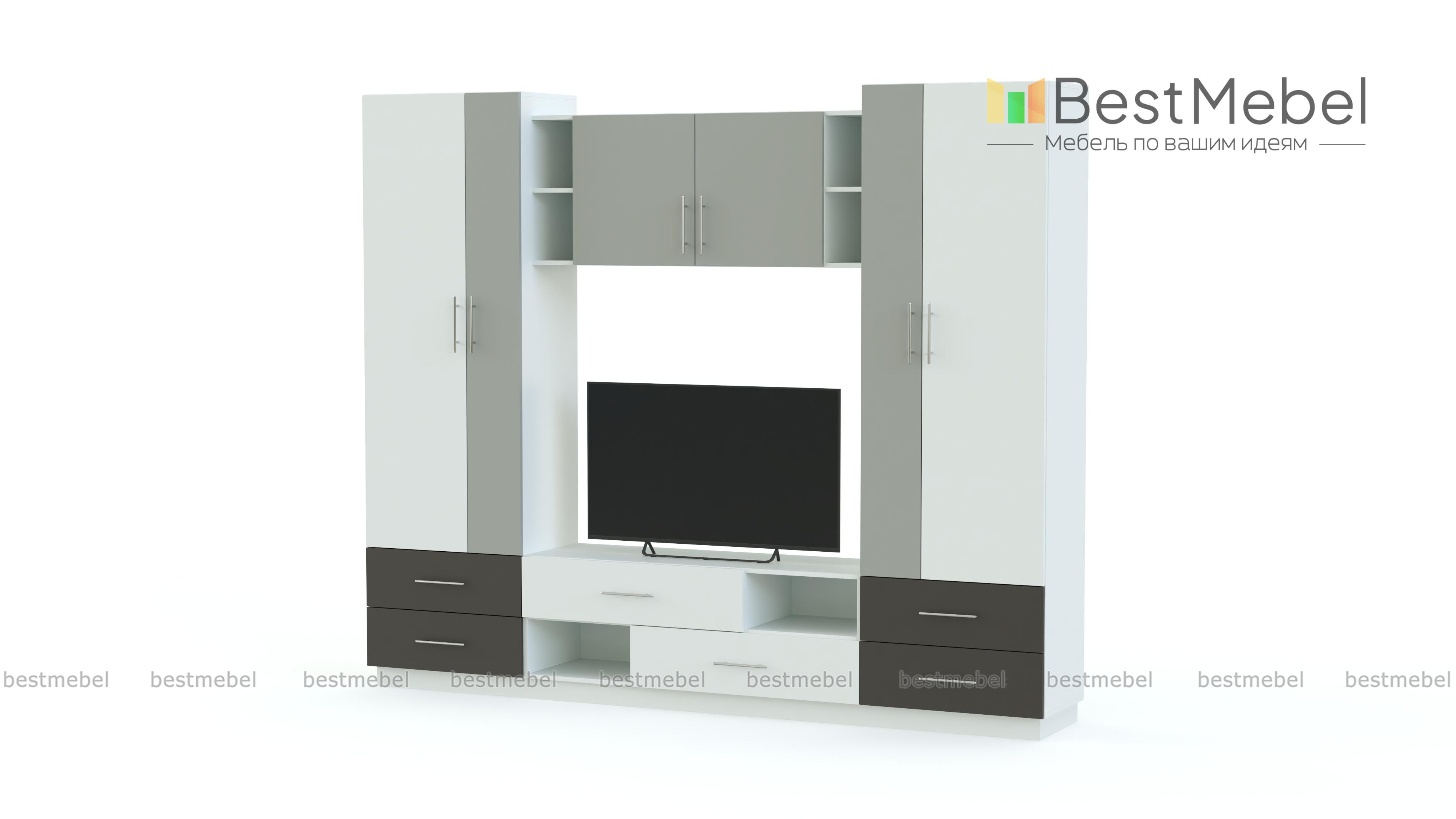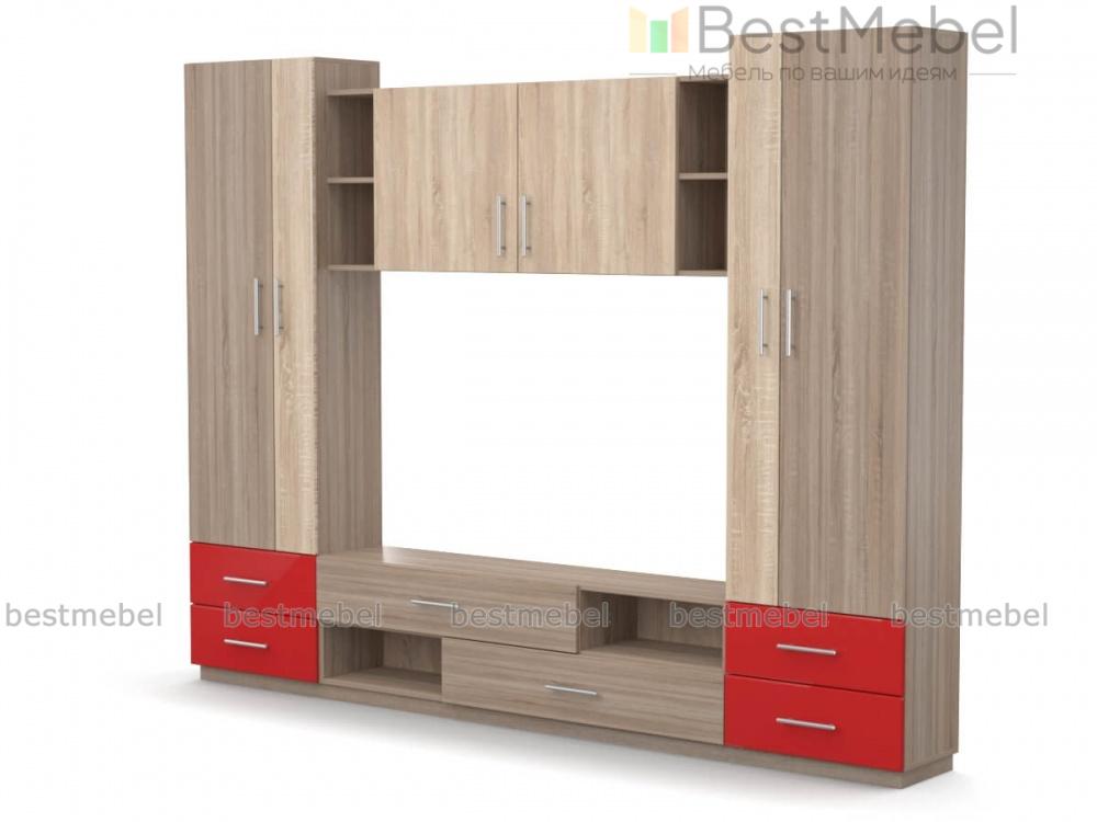 Стенка Flora 10 BMS – популярная модель в современном стиле, отличный выбор для небольшой гостиной или квартиры-студии. Выполненная в древесных тонах, компактная стенка декорирована цветными вставками и дополнена практичными ручками-рейлингами. Простая по форме, композиция включает в себя распашные бельевые шкафы, выдвижные ящики, навесную секцию и просторную нишу под ТВ. Купить стенку Flora 10 BMS, подобрав оптимальное цветовое решение, вы сможете в нашем интернет-магазине.