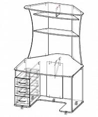 Угловой компьютерный стол Лисса с ящиками BMS