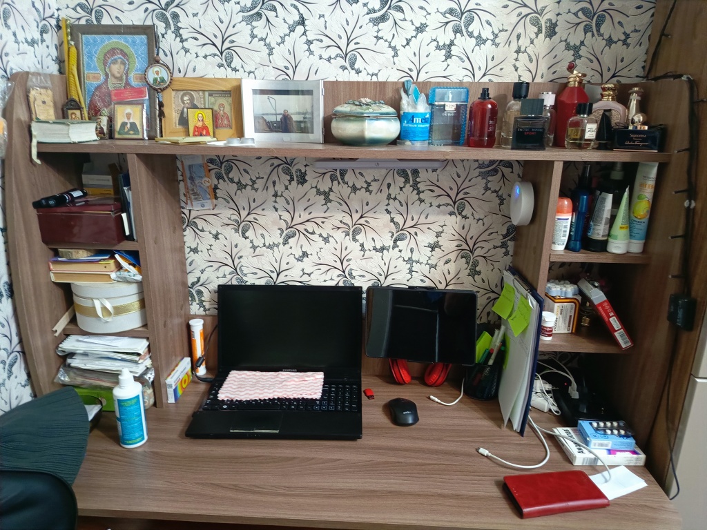 Приобрёл навесной стол длиной 1000 мм.Собрал и подвесил сам без проблем - нормальная инструкция, сборка несложная, повозился только с монтажом.В центральной нише расположил ноут, и для мыши места осталось мало. Так что лучше при такой компоновке брать подлиннее стол. Ячейки по бокам невысокие, из-за чего они неудобные для использования. Если было бы выполнено только одно разделение, получилось бы лучше.