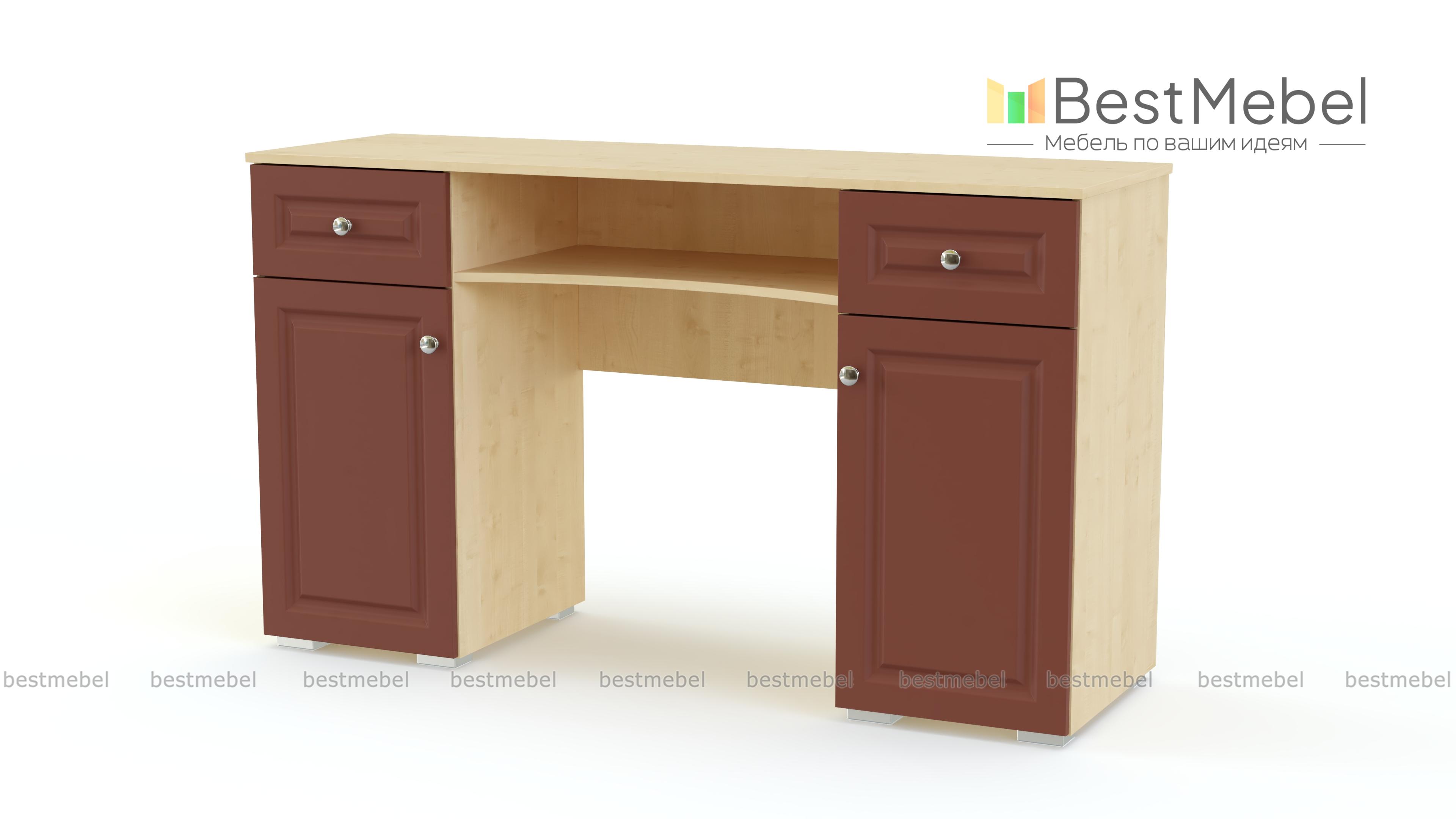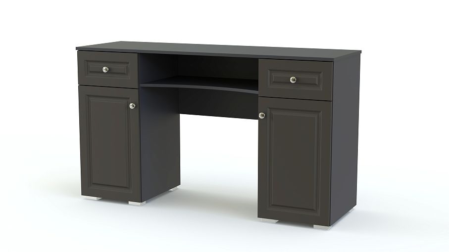 Стол туалетный Локи 52 BMS – это классическая модель с фрезерованными фасадами, выполненная в насыщенном темном оттенке. Двухтумбовый столик оборудован удобной системой хранения из пары выдвижных ящиков, распашных отделений и открытой полки со скругленным вырезом. На просторной прямоугольной столешнице достаточно места для зеркала и необходимых под рукой мелочей. Купить стол туалетный Локи 52 BMS и сделать спальный интерьер функциональнее вам поможет наш интернет-магазин.