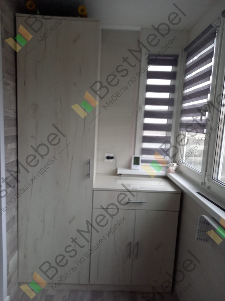 Изготовлена тумба к шкафу по индивидуальному эскизу на балкон. Заказ 194071. Тумба с выпиленным углом. Встала идеально. Альтернатива встроенной мебели.